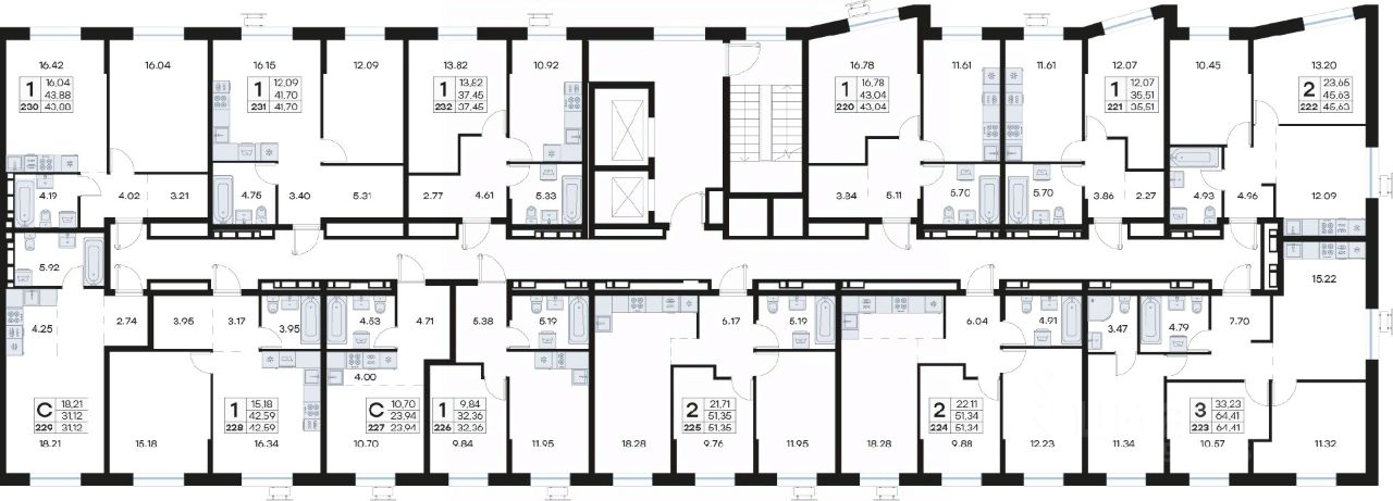 • Планировочные решения под любой жизненный сценарий от 23 до 67 м²