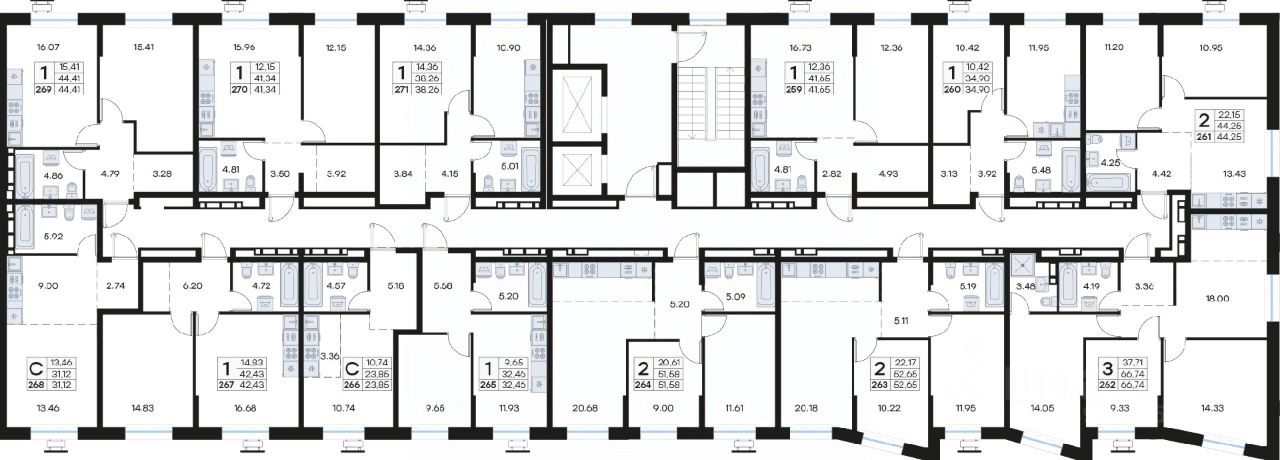 • Планировочные решения под любой жизненный сценарий от 23 до 67 м²