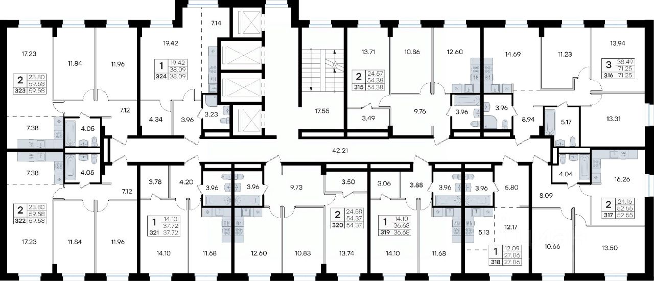 Продается 2-комн. квартира на 11-м этаже в жилом комплексе GloraX Тухачевского — современном проекте нового формата в престижном районе Владивостока. Общая площадь лота составляет 59,58 кв. м, из которых 23,80 кв. м отведено под жилую и 7,38 кв. м под кухонную зону. Номер квартиры - 323.