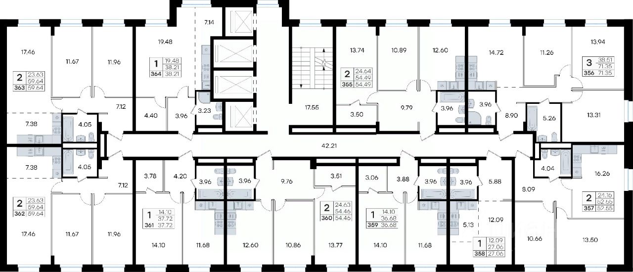 Продается 2-комн. квартира на 15-м этаже в жилом комплексе GloraX Тухачевского — современном проекте нового формата в престижном районе Владивостока. Общая площадь лота составляет 52,55 кв. м, из которых 24,16 кв. м отведено под жилую и 16,26 кв. м под кухонную зону. Номер квартиры - 357.