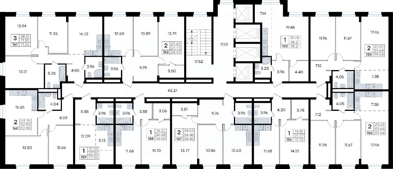 Продается 2-комн. квартира на 17-м этаже в жилом комплексе GloraX Тухачевского — современном проекте нового формата в престижном районе Владивостока. Общая площадь лота составляет 54,49 кв. м, из которых 24,64 кв. м отведено под жилую и 12,60 кв. м под кухонную зону. Номер квартиры - 162.