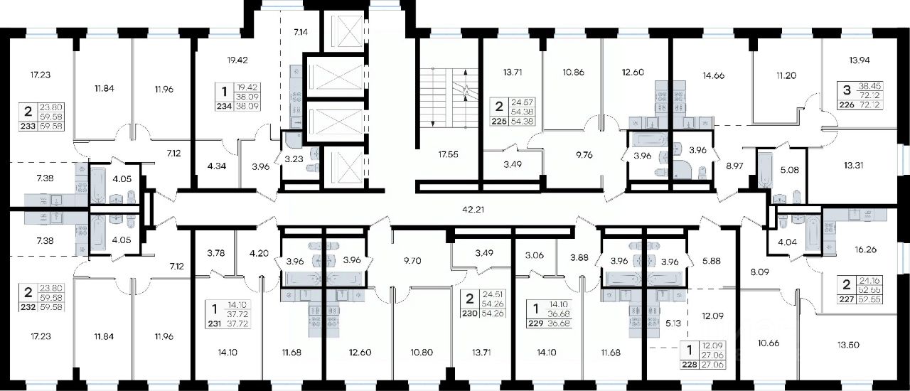 Продается 2-комн. квартира на 2-м этаже в жилом комплексе GloraX Тухачевского — современном проекте нового формата в престижном районе Владивостока. Общая площадь лота составляет 54,26 кв. м, из которых 24,51 кв. м отведено под жилую и 12,60 кв. м под кухонную зону. Номер квартиры - 230.