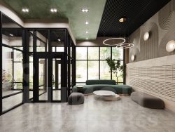 • Премиальный дизайн входных групп реcепшн и лаунж-зоной