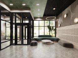 • Премиальный дизайн входных групп реcепшн и лаунж-зоной