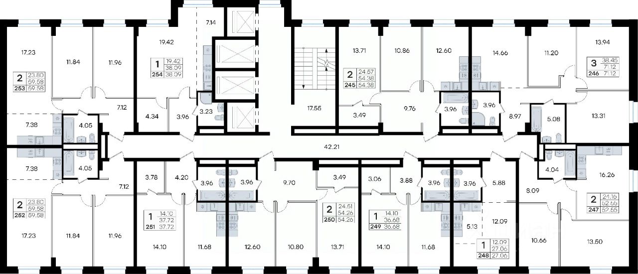 Продается 2-комн. квартира на 4-м этаже в жилом комплексе GloraX Тухачевского — современном проекте нового формата в престижном районе Владивостока. Общая площадь лота составляет 59,58 кв. м, из которых 23,80 кв. м отведено под жилую и 7,38 кв. м под кухонную зону. Номер квартиры - 253.