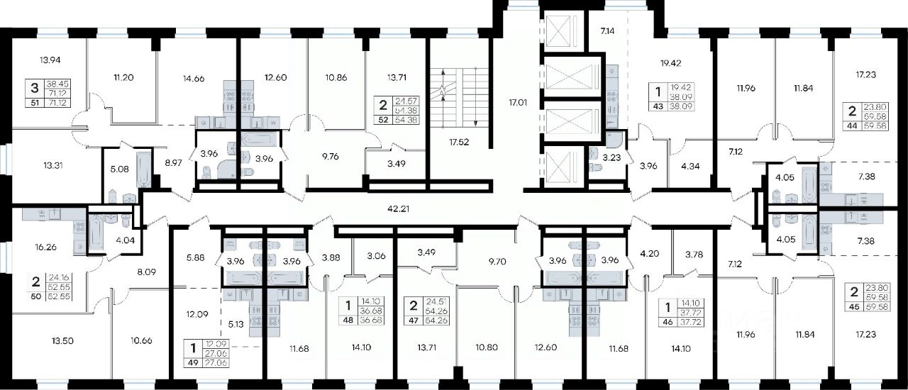 Продается 1-комн. квартира на 6-м этаже в жилом комплексе GloraX Тухачевского — современном проекте нового формата в престижном районе Владивостока. Общая площадь лота составляет 37,72 кв. м, из которых 14,10 кв. м отведено под жилую и 11,68 кв. м под кухонную зону. Номер квартиры - 46.
