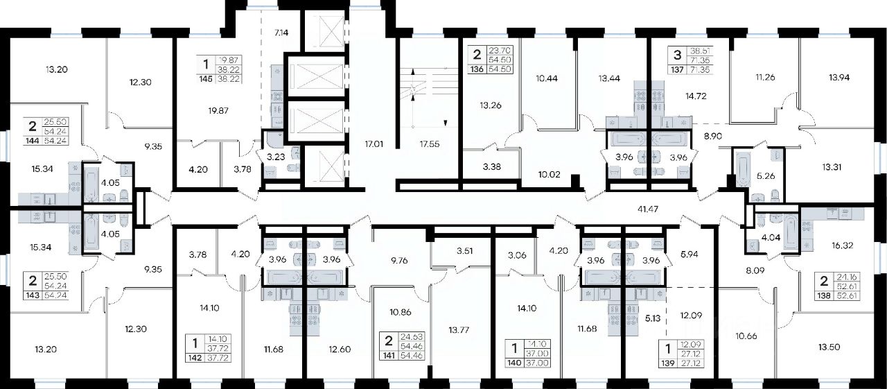 Продается 2-комн. квартира на 15-м этаже в жилом комплексе GloraX Тухачевского — современном проекте нового формата в престижном районе Владивостока. Общая площадь лота составляет 54,46 кв. м, из которых 24,63 кв. м отведено под жилую и 12,60 кв. м под кухонную зону. Номер квартиры - 141.