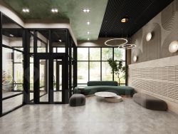 • Премиальный дизайн входных групп реcепшн и лаунж-зоной