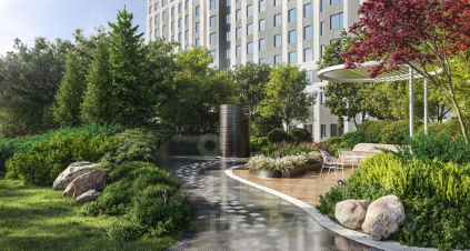 Эксклюзивный проект благоустройства территории разработан одной из лучших студий ландшафтного дизайна DEREVOPARK с фокусом на комфорт и удобство для всех жителей комплекса.