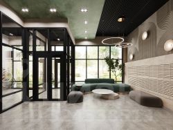 • Премиальный дизайн входных групп реcепшн и лаунж-зоной