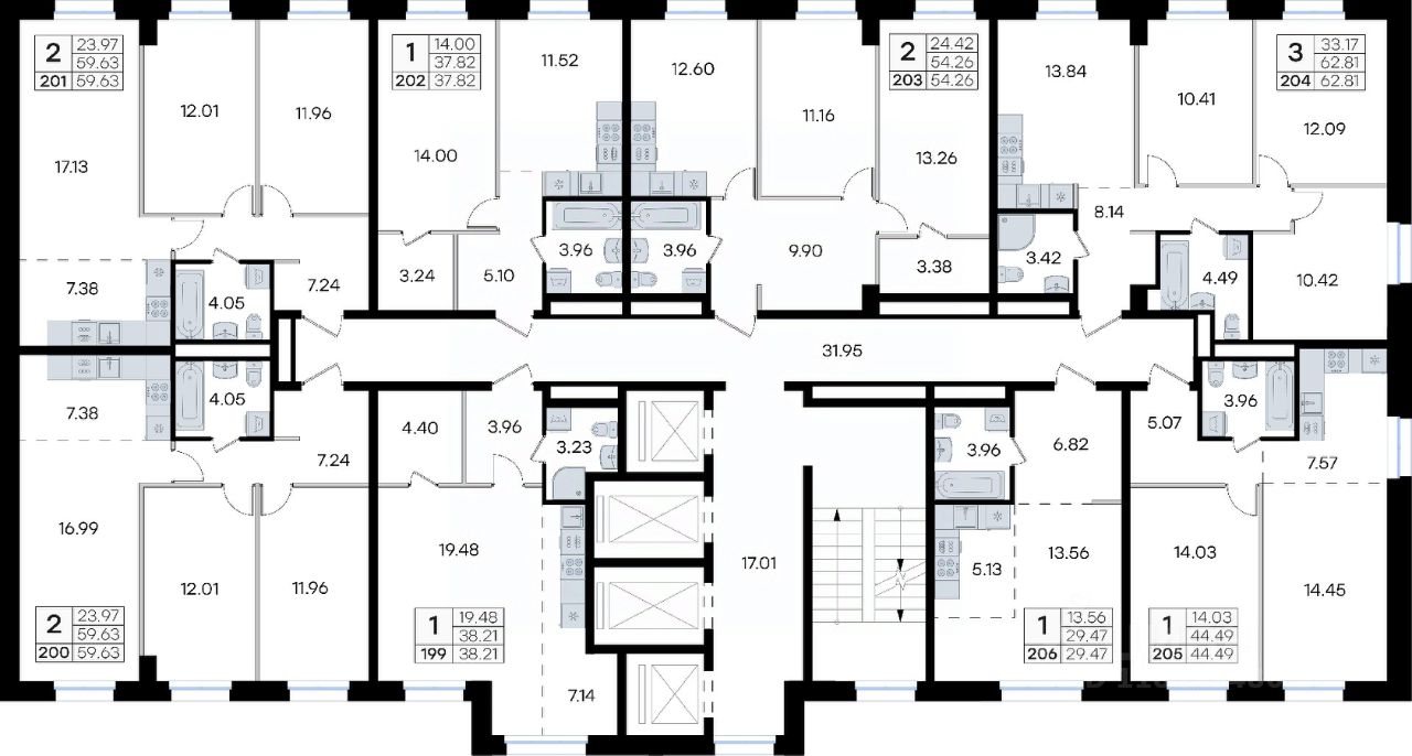Продается 2-комн. квартира на 3-м этаже в жилом комплексе GloraX Тухачевского — современном проекте нового формата в престижном районе Владивостока. Общая площадь лота составляет 54,26 кв. м, из которых 24,42 кв. м отведено под жилую и 12,60 кв. м под кухонную зону. Номер квартиры - 203.