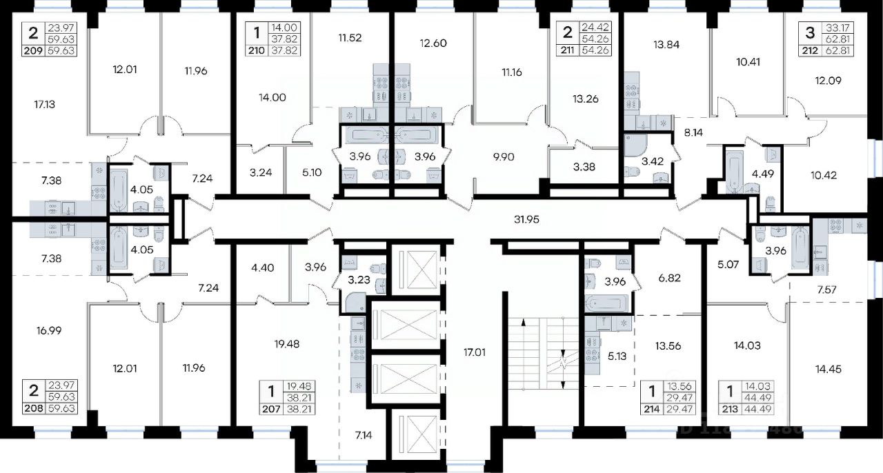 59,63 м²