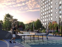Территория жилого квартала благоустроена и включает игровые зоны и спортивные площадки для детей различных возрастных групп, уютные зоны отдыха со скамейками и универсальную воркаут-площадку для активного досуга.