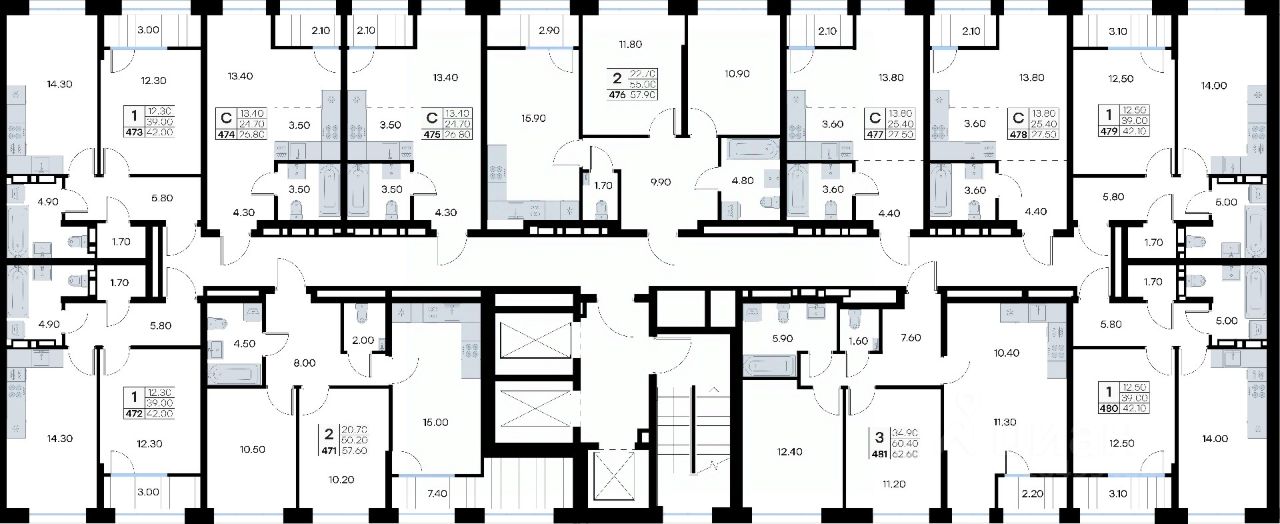 Цокольный этаж здания отведен под индивидуальные кладовые площадью от 3 до 7 квадратных метров, которые можно использовать для хранения сезонных вещей. Доступ к кладовым - на лифте с жилых этажей.