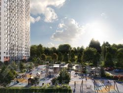 Территория жилого квартала благоустроена и включает игровые зоны и спортивные площадки для детей различных возрастных групп, уютные зоны отдыха со скамейками и универсальную воркаут-площадку для активного досуга.
