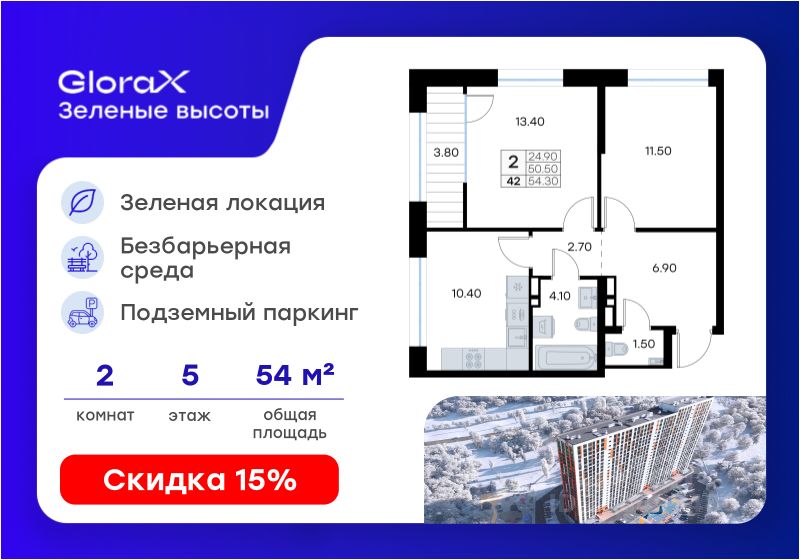 Узнайте больше в отделе продаж — выберите свою квартиру в GloraX Зелёные высоты уже сегодня!