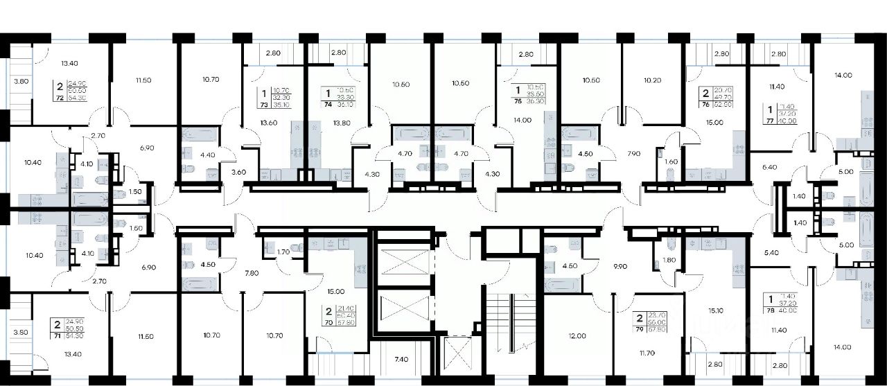 Цокольный этаж здания отведен под индивидуальные кладовые площадью от 3 до 7 квадратных метров, которые можно использовать для хранения сезонных вещей. Доступ к кладовым - на лифте с жилых этажей.