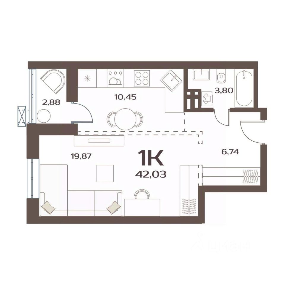 Общая площадь42,03 м²