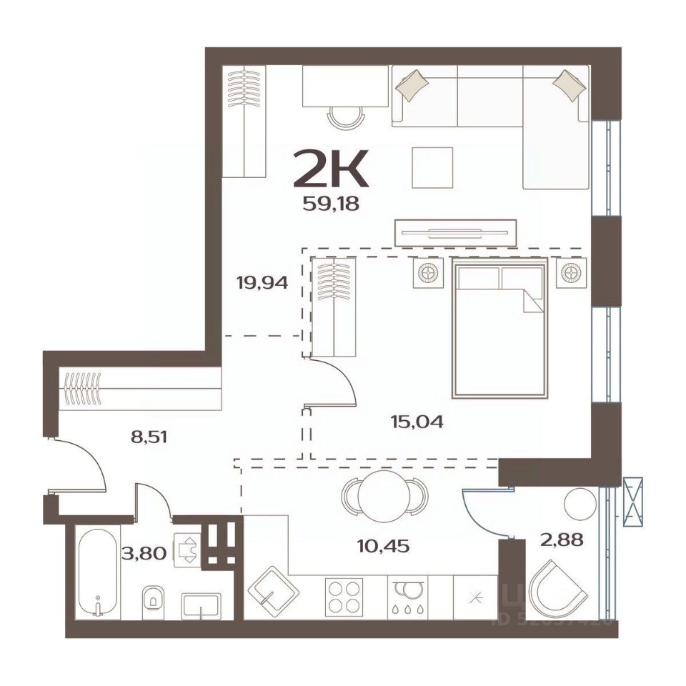 Общая площадь59,18 м²