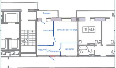 Большая кухня гостиная + отдельная спальня, гардероб, а также