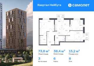 Строим кварталы для жизни с заботой о будущем. Предлагается 3-комнатная квартира комфорт-класса 73,8 кв.м в корпусе 6 на 8 этаже, в ЖК "Квартал Нейбута"