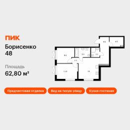 Продаётся 2-комн. квартира площадью 62,8 кв.м на 2 этаже 17 этажного дома (Корпус 3, Секция 3) проекта ПИК Борисенко 48. Светлый просторный подъезд на уровне земли, функциональная планировка, большие окна, предчистовая отделка.
