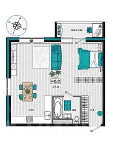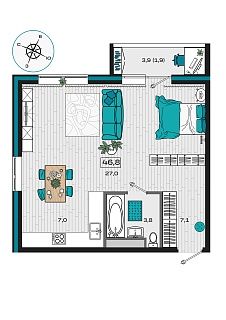 Продаётся 1-комнатная квартира в строящемся доме (Дом 1), срок сдачи: I-кв. 2026, общей площадью 46.8 кв.м., на 3 этаже. Новый жилой комплекс "Солнечный" от Специализированного застройщика "ДВИЦ-1" расположен по адресу: г. Уссурийск, мкр. Радужный, по ул. Солнечная.