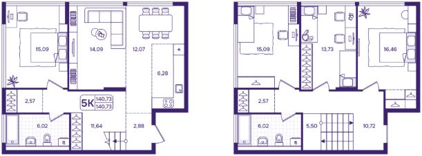 Двухуровневая (двухэтажная) квартир для большой семьи с детьми