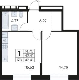 Продается 1-комн. квартира на 14-м этаже в квартале GloraX Клубный. GloraX Клубный - уникальный видовой проект с выделяющейся архитектурой в развитом районе Владивостока. Общая площадь лота составляет 42,41 кв. м, из которых 14,75 кв. м отведено под жилую и 16,62 кв. м под кухонную зону. Номер квартиры - 173.