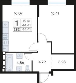 Продается 1-комн. квартира на 6-м этаже в квартале GloraX Клубный. GloraX Клубный - уникальный видовой проект с выделяющейся архитектурой в развитом районе Владивостока. Общая площадь лота составляет 44,41 кв. м, из которых 15,41 кв. м отведено под жилую и 16,07 кв. м под кухонную зону. Номер квартиры - 282.