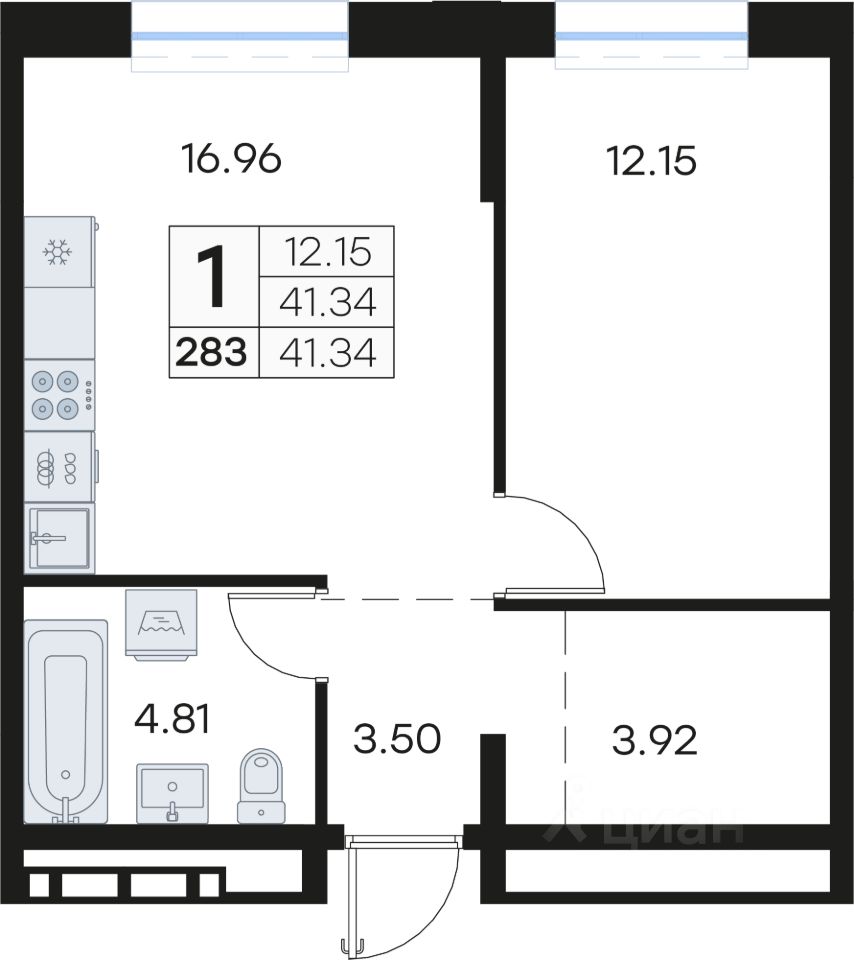 Продается 1-комн. квартира на 6-м этаже в квартале GloraX Клубный. GloraX Клубный - уникальный видовой проект с выделяющейся архитектурой в развитом районе Владивостока. Общая площадь лота составляет 41,34 кв. м, из которых 12,15 кв. м отведено под жилую и 16,96 кв. м под кухонную зону. Номер квартиры - 283.