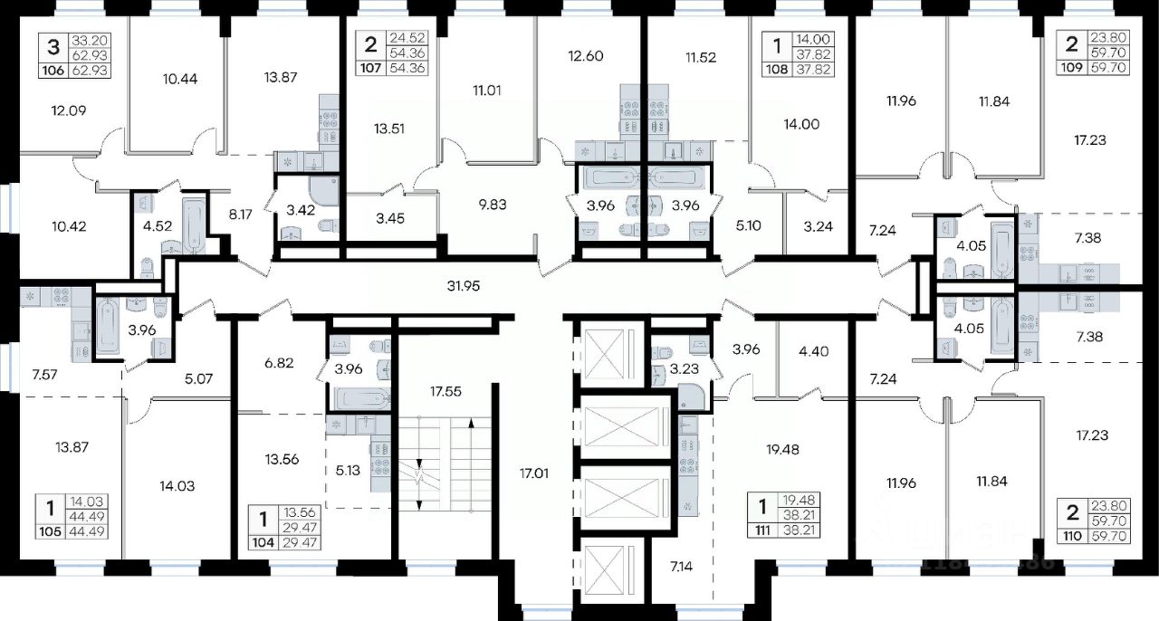 Продается 2-комн. квартира на 14-м этаже в жилом комплексе GloraX Тухачевского — современном проекте нового формата в престижном районе Владивостока. Общая площадь лота составляет 54,36 кв. м, из которых 24,52 кв. м отведено под жилую и 12,60 кв. м под кухонную зону. Номер квартиры - 107.