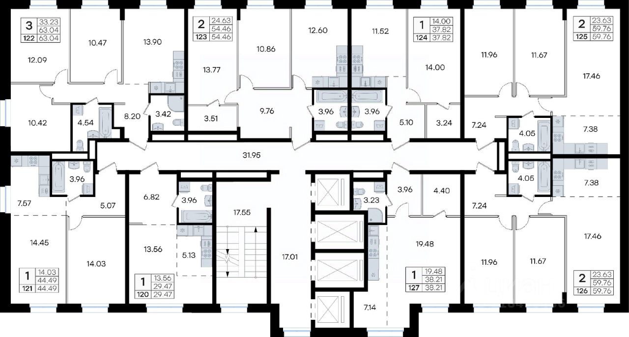 Продается 1-комн. квартира на 16-м этаже в жилом комплексе GloraX Тухачевского — современном проекте нового формата в престижном районе Владивостока. Общая площадь лота составляет 44,49 кв. м, из которых 14,03 кв. м отведено под жилую и 7,57 кв. м под кухонную зону. Номер квартиры - 121.