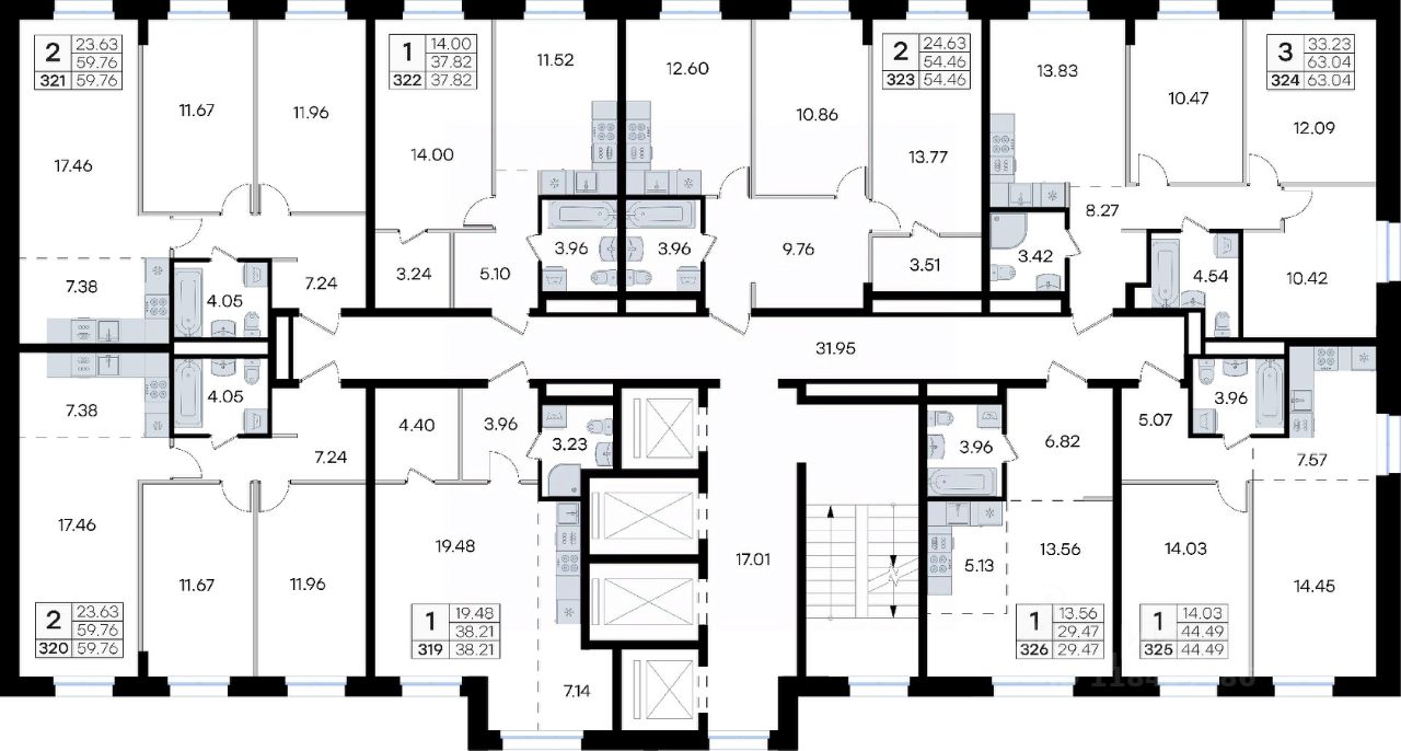 Продается квартира-студия на 18-м этаже в жилом комплексе GloraX Тухачевского — современном проекте нового формата в престижном районе Владивостока. Общая площадь лота составляет 38,21 кв. м, из которых 19,48 кв. м отведено под жилую и 7,14 кв. м под кухонную зону. Номер квартиры - 319.