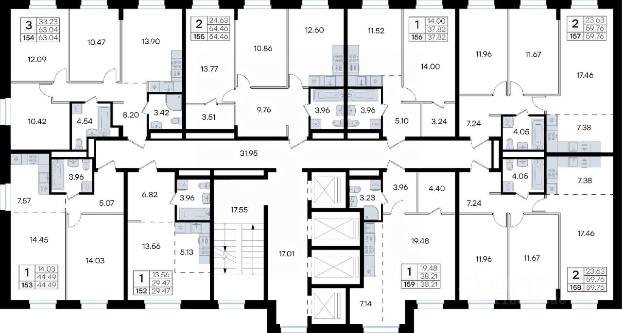 Продается 2-комн. квартира на 20-м этаже в жилом комплексе GloraX Тухачевского — современном проекте нового формата в престижном районе Владивостока. Общая площадь лота составляет 54,46 кв. м, из которых 24,63 кв. м отведено под жилую и 12,60 кв. м под кухонную зону. Номер квартиры - 155.