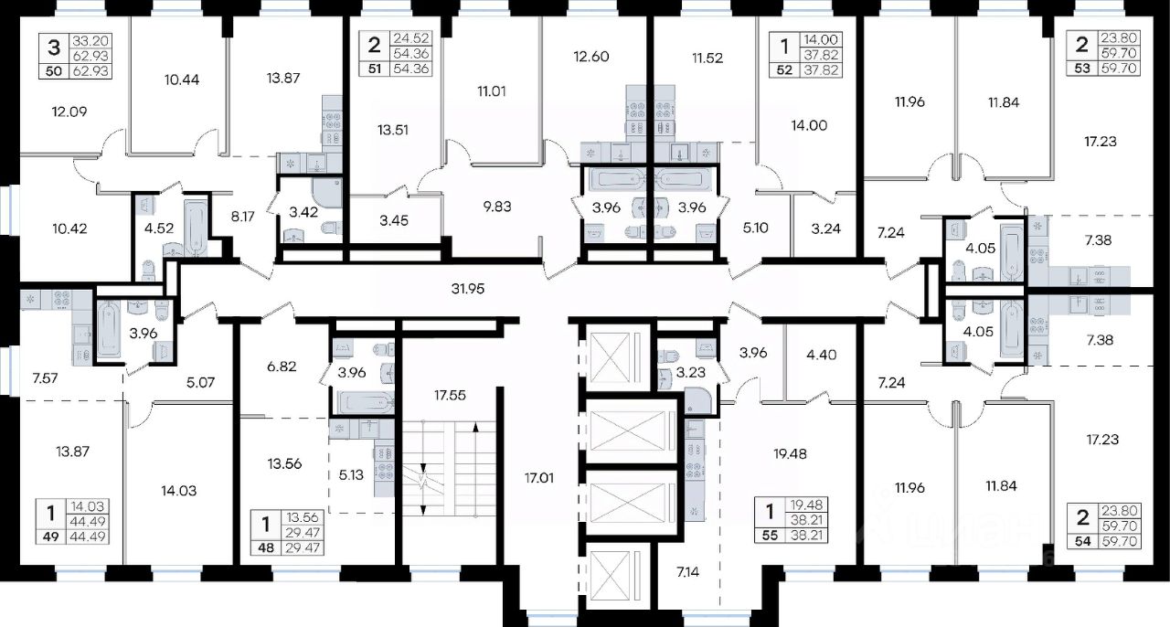 Продается квартира-студия на 7-м этаже в жилом комплексе GloraX Тухачевского — современном проекте нового формата в престижном районе Владивостока. Общая площадь лота составляет 38,21 кв. м, из которых 19,48 кв. м отведено под жилую и 7,14 кв. м под кухонную зону. Номер квартиры - 55.