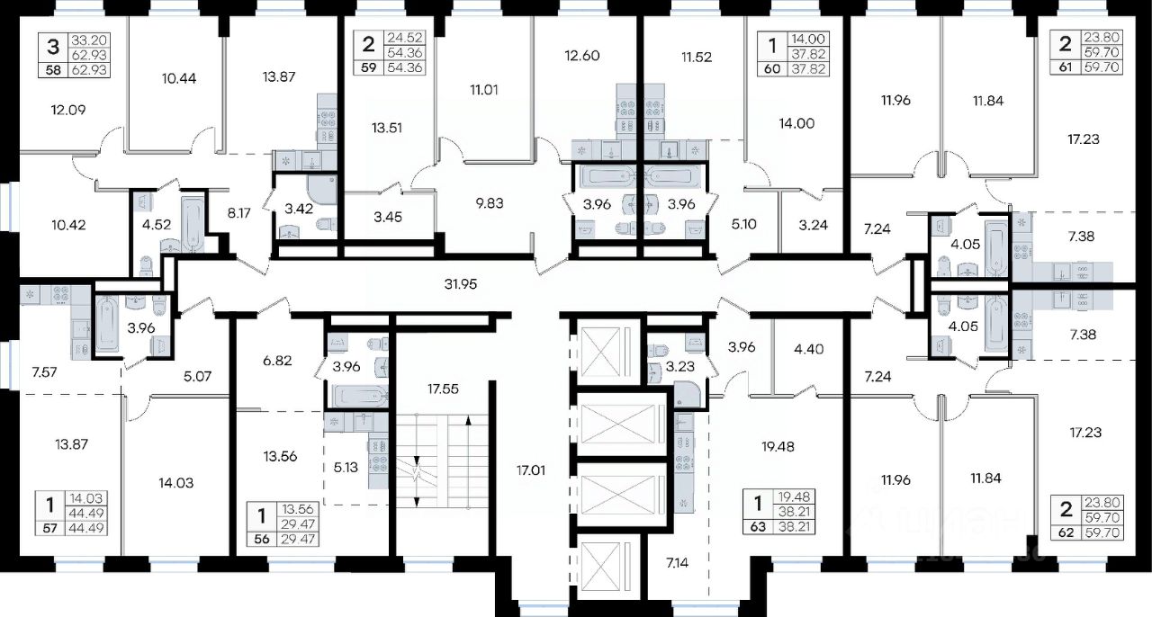 Продается 1-комн. квартира на 8-м этаже в жилом комплексе GloraX Тухачевского — современном проекте нового формата в престижном районе Владивостока. Общая площадь лота составляет 44,49 кв. м, из которых 14,03 кв. м отведено под жилую и 7,57 кв. м под кухонную зону. Номер квартиры - 57.