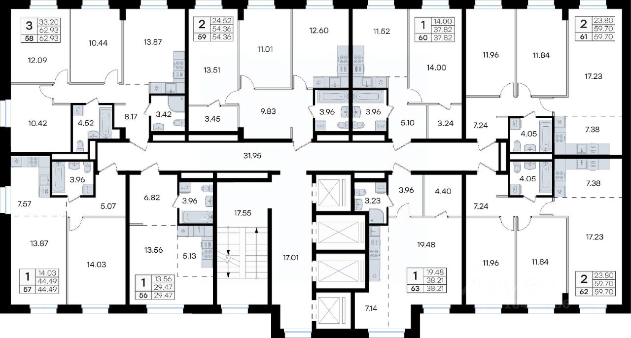 Продается 3-комн. квартира на 8-м этаже в жилом комплексе GloraX Тухачевского — современном проекте нового формата в престижном районе Владивостока. Общая площадь лота составляет 62,93 кв. м, из которых 33,20 кв. м отведено под жилую и 13,87 кв. м под кухонную зону. Номер квартиры - 58.