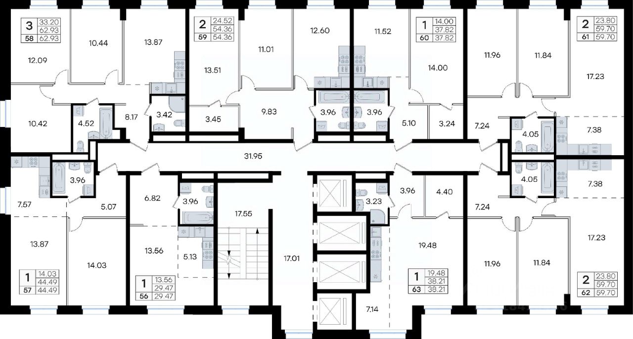 Продается 2-комн. квартира на 8-м этаже в жилом комплексе GloraX Тухачевского — современном проекте нового формата в престижном районе Владивостока. Общая площадь лота составляет 54,36 кв. м, из которых 24,52 кв. м отведено под жилую и 12,60 кв. м под кухонную зону. Номер квартиры - 59.