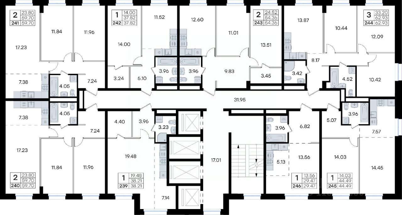 Продается 2-комн. квартира на 8-м этаже в жилом комплексе GloraX Тухачевского — современном проекте нового формата в престижном районе Владивостока. Общая площадь лота составляет 54,36 кв. м, из которых 24,52 кв. м отведено под жилую и 12,60 кв. м под кухонную зону. Номер квартиры - 243.