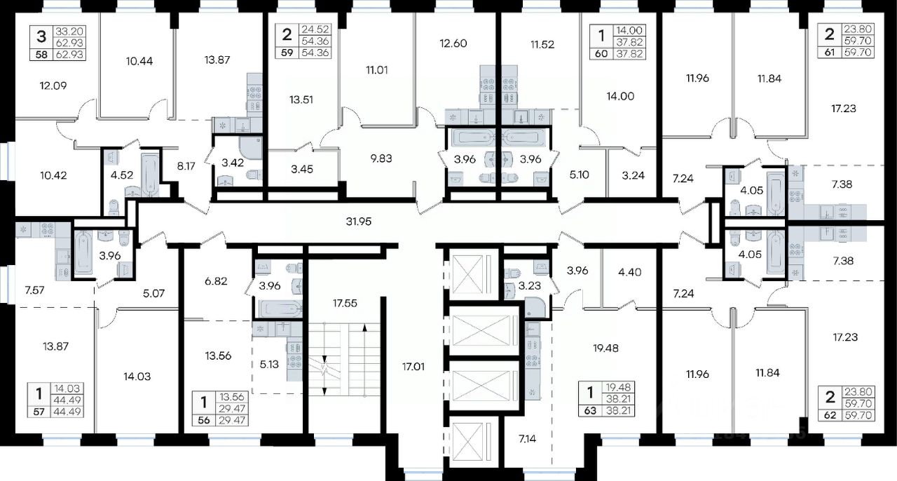 Продается 2-комн. квартира на 8-м этаже в жилом комплексе GloraX Тухачевского — современном проекте нового формата в престижном районе Владивостока. Общая площадь лота составляет 59,70 кв. м, из которых 23,80 кв. м отведено под жилую и 7,38 кв. м под кухонную зону. Номер квартиры - 62.