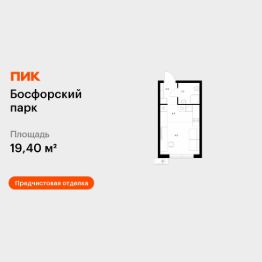 Продаётся квартира-студия площадью 19,4 кв.м на 4 этаже 9 этажного дома (Корпус 10, Секция 1) проекта ПИК Босфорский парк. Светлый просторный подъезд на уровне земли, функциональная планировка, большие окна, предчистовая отделка.