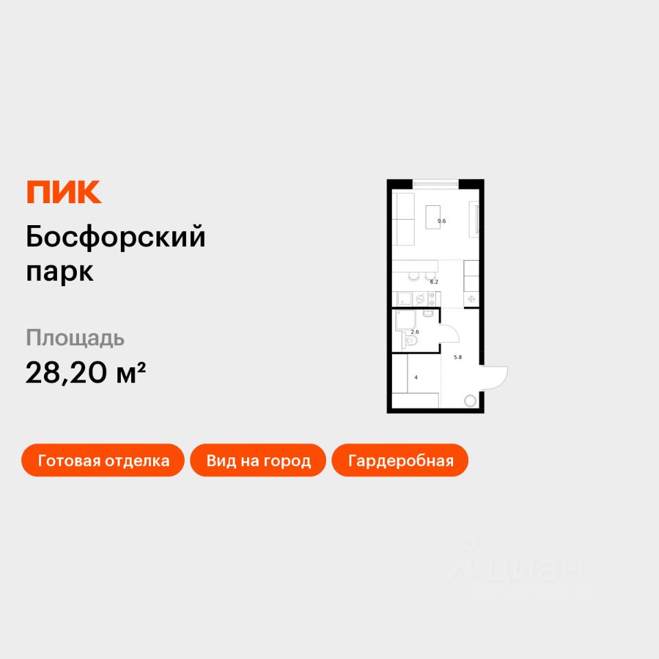 Продаётся квартира-студия площадью 28,2 кв.м на 2 этаже 9 этажного дома (Корпус 6, Секция 1) проекта ПИК Босфорский парк. Светлый просторный подъезд на уровне земли, функциональная планировка, большие окна, c отделкой.