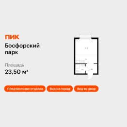 Продаётся квартира-студия площадью 23,5 кв.м на 11 этаже 17 этажного дома (Корпус 5, Секция 1) проекта ПИК Босфорский парк. Светлый просторный подъезд на уровне земли, функциональная планировка, большие окна, предчистовая отделка.