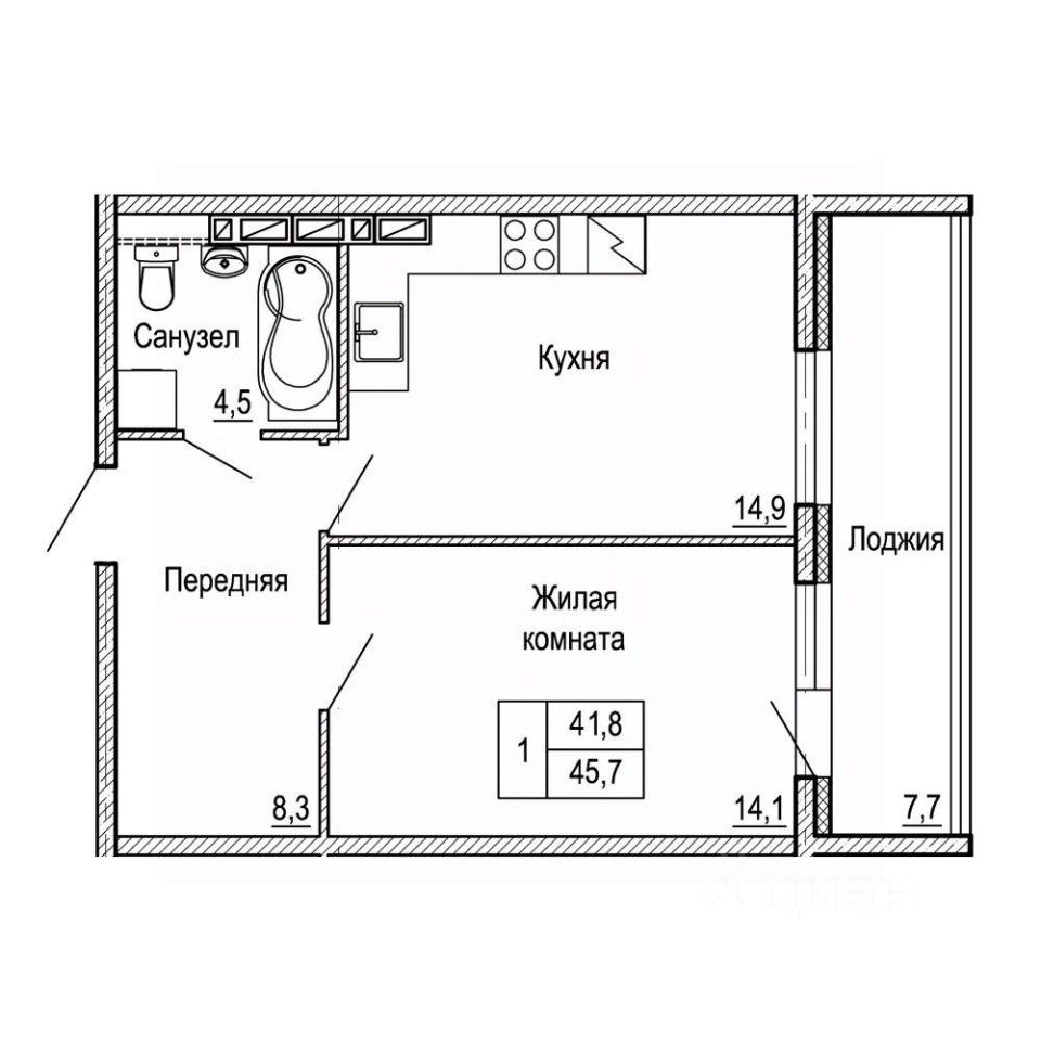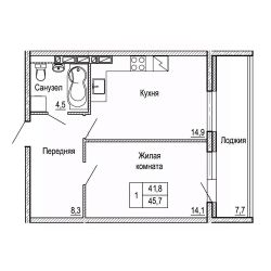 Общая площадь45,7 м²