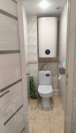 Туалет и ванная комната отделаны кафелем, установлен водонагреватель.