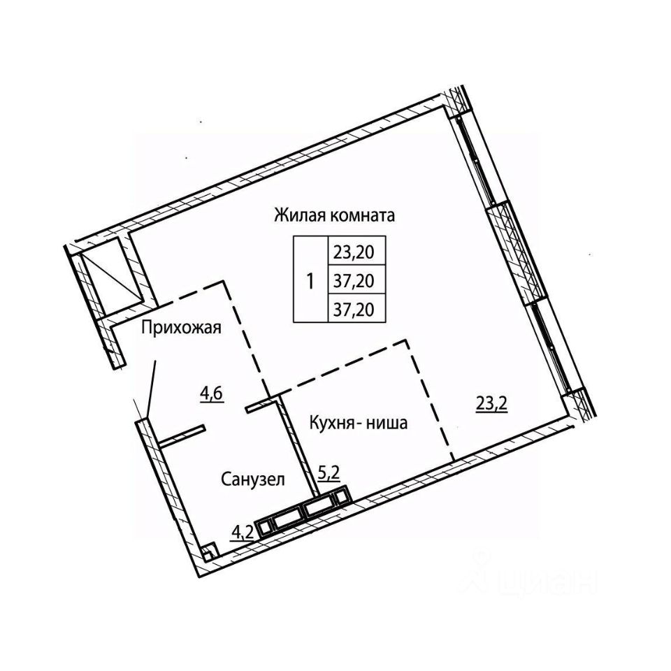 1-комн. квартира, 37,2 м²