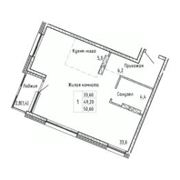 2-комн. квартира, 50,6 м²