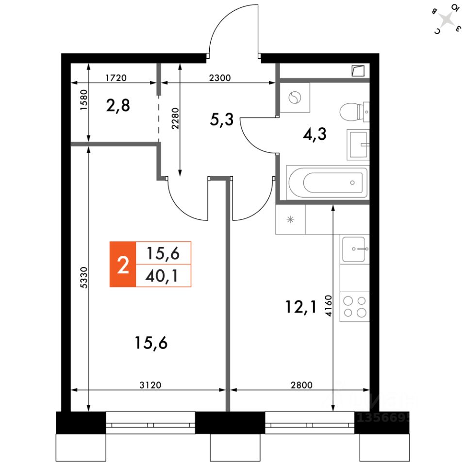 Продаётся 1-к квартира номер 9 общей площадью 40.1 кв.м. на 2-м этаже 30 этажного здания. Отделка Whitebox. Цена с учётом скидки.