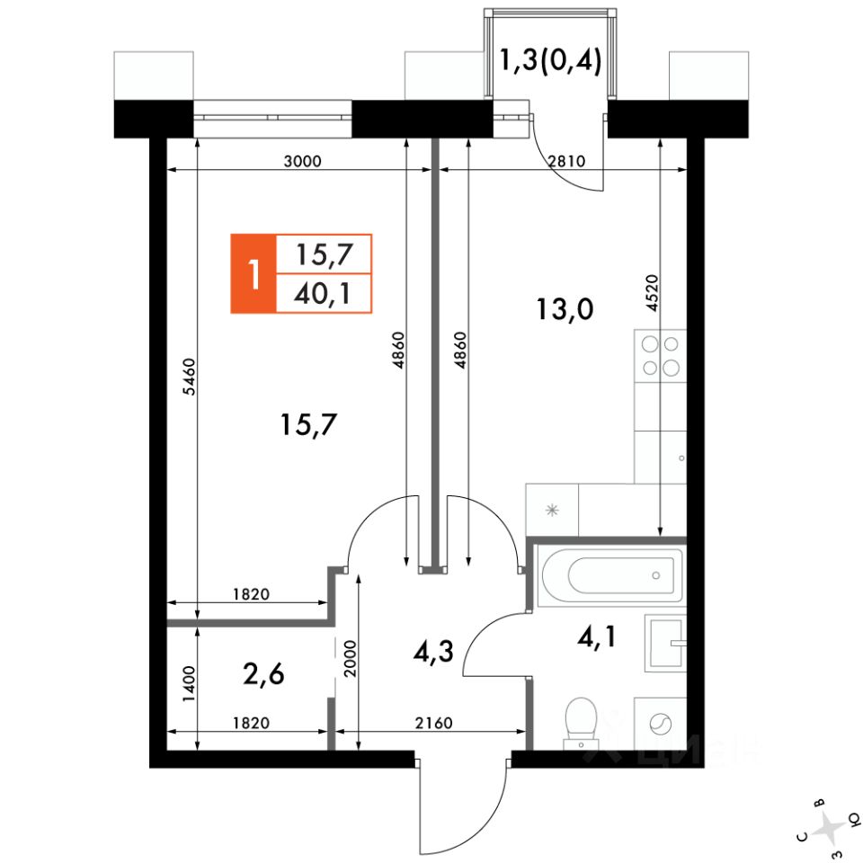 Продаётся 1-к квартира номер 219 общей площадью 40.1 кв.м. на 20-м этаже 24 этажного здания. Отделка Whitebox. Цена с учётом скидки.